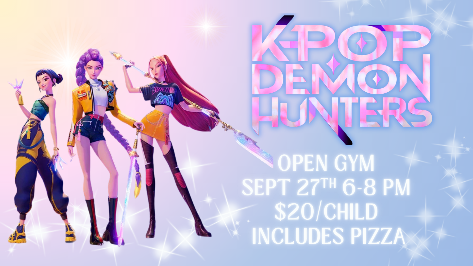 Your athlete will enjoy open gym time, fun activities, and a K-Pop Demon Hunters vibe they won’t want to miss. Spaces are limited—grab your spot today!